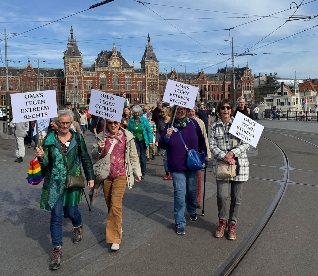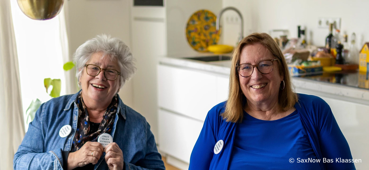 Denk je: ” ik wil eigenlijk wel wat doen, maar wat dan?” Begin eenvoudig, word actief vanuit je eigen huis. Speld onze button op en maak een praatje met je kind, kleinkind, neefje, nicht, buurman of buurvrouw. Je kunt vertellen waarom jij actief wilt worden voor Oma’s tegen extreemrechts. Luister naar elkaars verhalen en waarden. Waar maken zij zich zorgen over? Wat zijn voor jou belangrijke waarden en waarom? Wat hebben jouw ouders bijvoorbeeld in de oorlog meegemaakt?